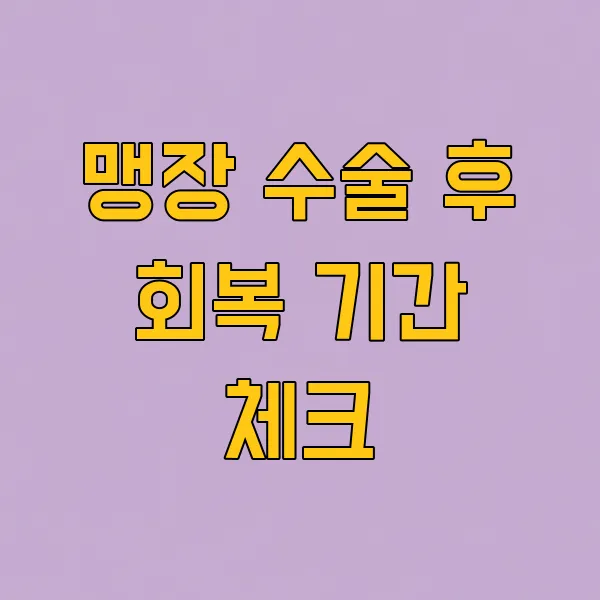 맹장 수술, 궁금한 회복 기간과 관리 방법을 속 시원하게 알려드릴게요! 수술 후 통증 관리부터 일상 복귀까지, 궁금증을 해결하고 건강하게 회복하는 데 도움을 드릴 수 있을 거예요.